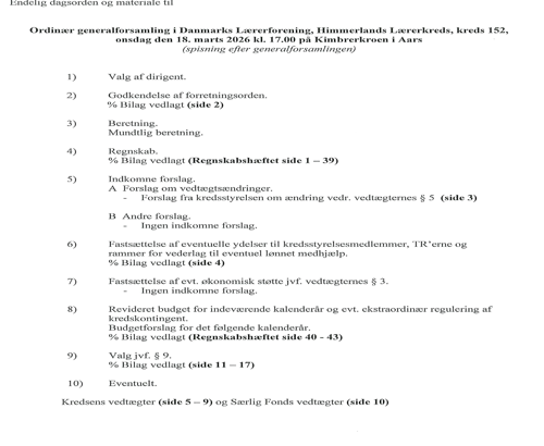 Læs om den seneste generalforsamling i Himmerlands Lærerkreds. Næste generalforsamling afholdes 18. marts 2026